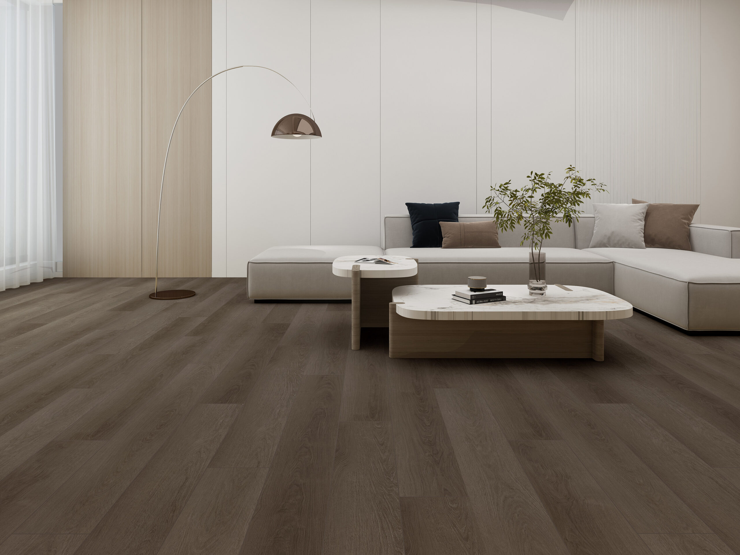 Madera Sable destaca por su tono marrón con matices cobrizos y vetas profundas. Es un suelo que añade fuerza visual, ideal para proyectos que no temen el contraste y la textura.